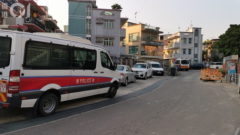周三(14日)下午,大批警員到打鼓嶺坪原路坪洋村搜查