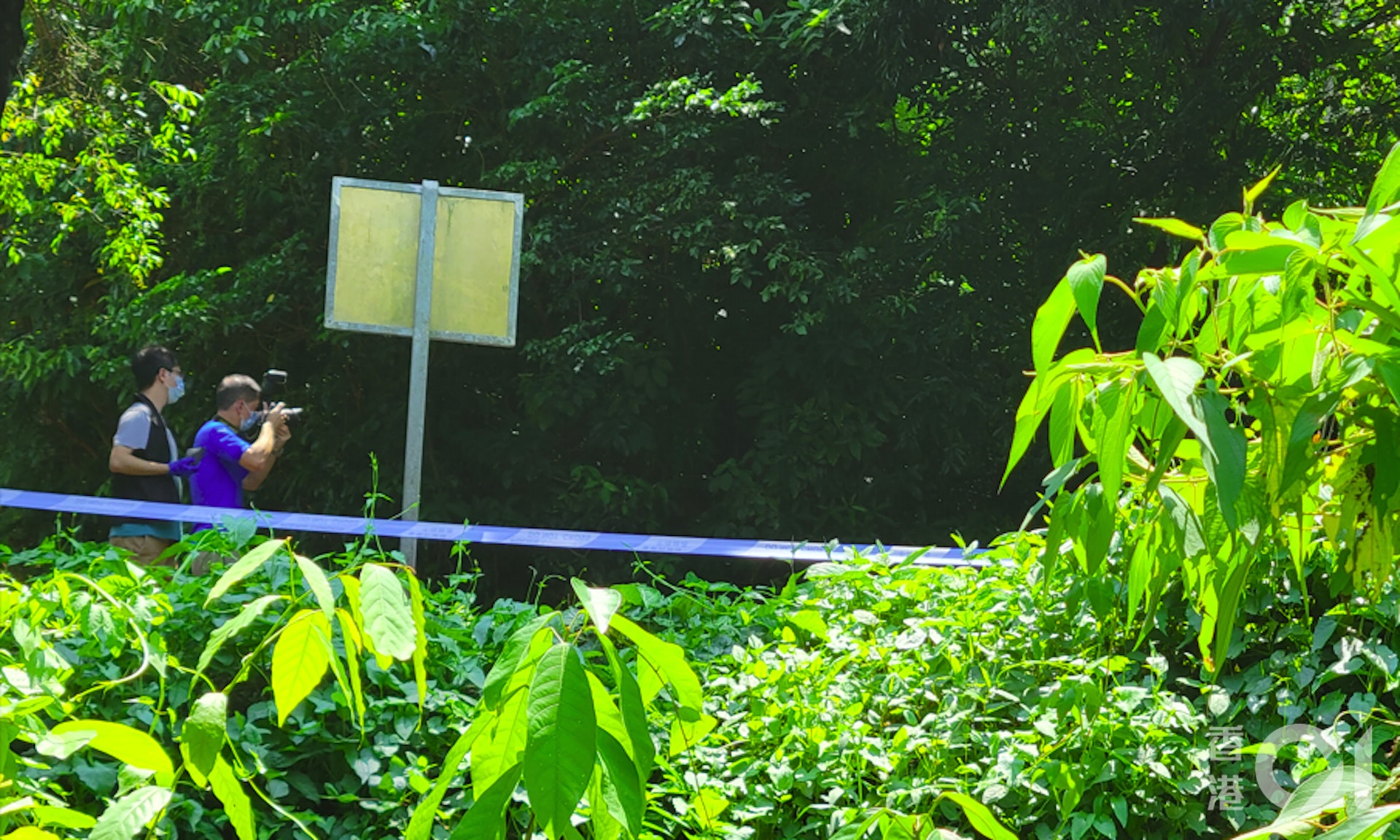 記者其後在廟宇正門對出約4米的草叢中,發現一對白色波鞋,鞋面疑有異常痕跡,相關物品是否與案件有關,仍有待警方進一步確認。
